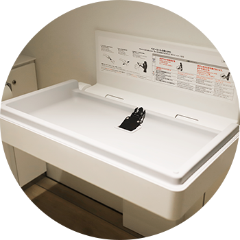 ゆったり設計でベビーチェアを備えたトイレ、おむつ交換台も、小さなお子さん連れのかたにとって、うれしい設備ではないでしょうか。