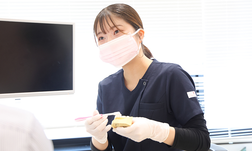 定期的なお口のメンテナンスでは、落ち着いた雰囲気の中で心地よいケアの提供に努めています。ご希望により、決まった衛生士が毎回のケアを提供する歯科衛生士担当制もお選びいただけます。