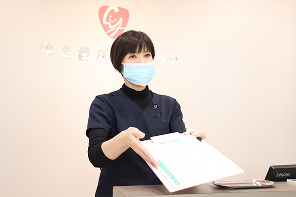 納得いただける診療を提供するため、患者さんとのコミュニケーションを大切にしているクリニックです。治療を開始する前には、カウンセリングシートを使い、患者さんのご要望を丁寧にお伺いします。症状や診断結果、治療法について、わかりやすく説明し、治療前、治療中、治療後にお口の中の写真を撮影して、治療によるお口の変化を視覚的にご確認いただきます。