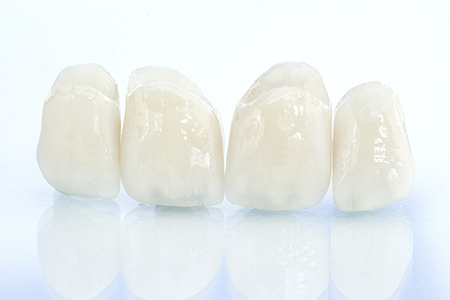 ジルコニア製の土台に、セラミックを焼きつけて作る被せ物です。強度が求められる土台の部分は耐久性に優れたジルコニア、人目につきやすい表側は自然な透明感のあるセラミックを使うことで、双方の素材の特性をいかした被せ物を作ることができます。