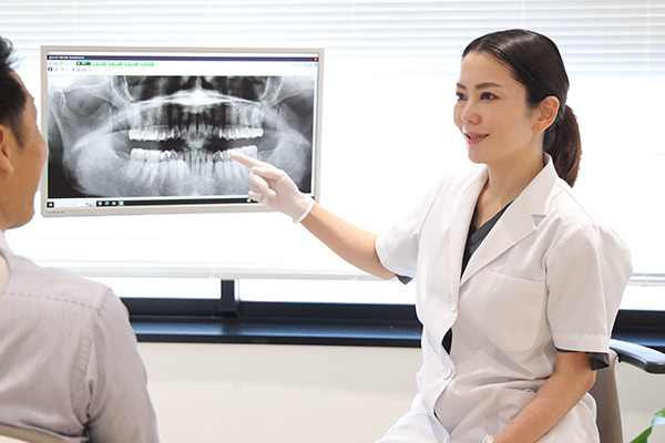 口腔外科の診療の際に、当院では歯科用CTを活用しています。親知らずの抜歯や顎関節症の治療、インプラント治療などでは、歯の根や顎の骨といった、肉眼では確認が難しい部分もきちんとチェックした上で、適した治療法を検討する必要があるからです。医科用のCTと比べて、放射線の影響が少ない点も歯科用CTのメリットです。