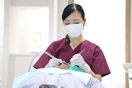 親知らずの抜歯や顎関節症、口内炎、インプラント治療など、外科的な処置が必要とされる治療は、口腔外科の領域です。扱うトラブルの中には、早期の治療が望ましいケースも多いため、気になることがある場合や治療を希望される場合は、早めにご相談ください。患者さんのお悩みを丁寧に伺った上で詳しい検査を行い、適した治療を提案いたします。