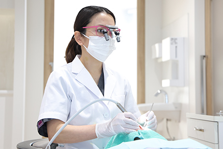 歯を削ると元の状態には戻せません。繰り返し削っていると、やがて歯を失うことにもなりかねません。当院では、むし歯治療のために歯を削る場合も、カリエスチェッカーと呼ばれる検査液を使って、むし歯と健康な部分を明確に区別します。さらに、削り過ぎや取り残しがないよう、拡大鏡などを活用した精密で丁寧な処置を心がけています。
