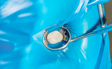 唾液に含まれる細菌が侵入しないよう、治療部位以外を覆うゴム製のシートです。再治療のリスクを軽減するため、当院ではできる限り使用しています。