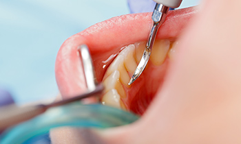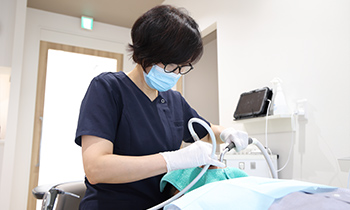 手動式または超音波式のスケーラーと呼ばれる器具を使い、主に歯の表面や歯と歯ぐきとの境目についた歯垢や歯石をきれいに除去します。汚れを除去した後は、再び汚れや歯垢がつきにくいよう、歯の表面をツルツルに仕上げます。むし歯予防にも役立つ処置です。