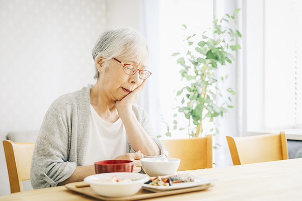 「口腔機能低下症(オーラルフレイル)」とは、加齢に伴って起こるお口の老化の初期状態です。食べづらい、飲み込みづらい、発音や滑舌が悪いといった状態を感じるようになり、生活の質が徐々に低下します。お口の機能低下は、全身の健康に悪影響を与え、誤嚥性肺炎や認知症などのリスクにもつながります。早い段階から予防対策をスタートさせましょう。