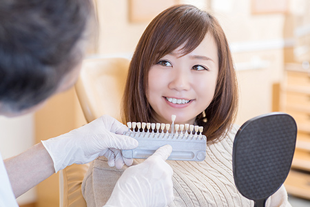 ホワイトニングは、専用の薬剤を使って歯の外側と内側からアプローチすることで、歯を白くする治療法です。歯の白さは加齢の影響を受けやすく、表面のエナメル質が経年で薄くなると、下の象牙質が透けて黄ばみが気になることも少なくありません。表面の汚れはクリーニングできれいにできても、黄ばみなどにも対応できるのはホワイトニングのみです。